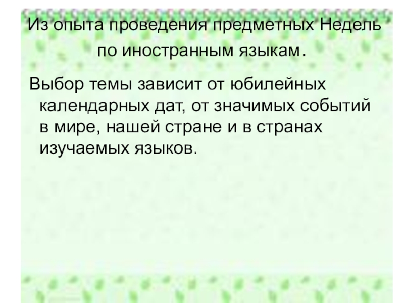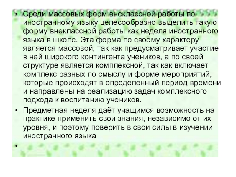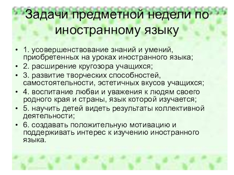 Предметные недели как форма мотивации учащихся в изучении иностранного языка
