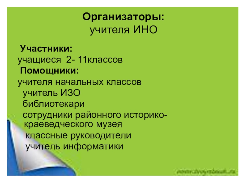 Это сайт презентаций, где можно хранить и обмениваться своими презентациями, докладами, проектами, шаблонами в формате PowerPoint с другими пользователями. Мы помогаем школьникам, студентам, учителям, преподавателям хранить и обмениваться учебными материалами.