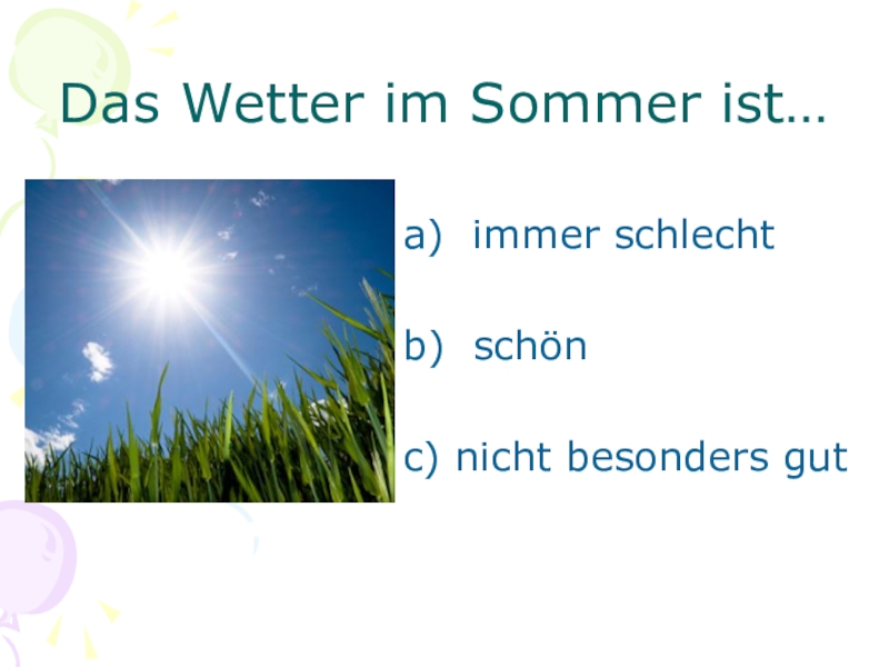 Слайд 1Wie ist das Wetter im Sommer?