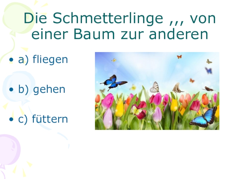 Слайд 6Die Schmetterlinge ,,, von einer Baum zur anderen