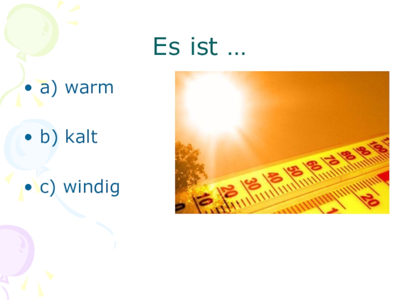 Es ist …a) warmb) kaltc) windig