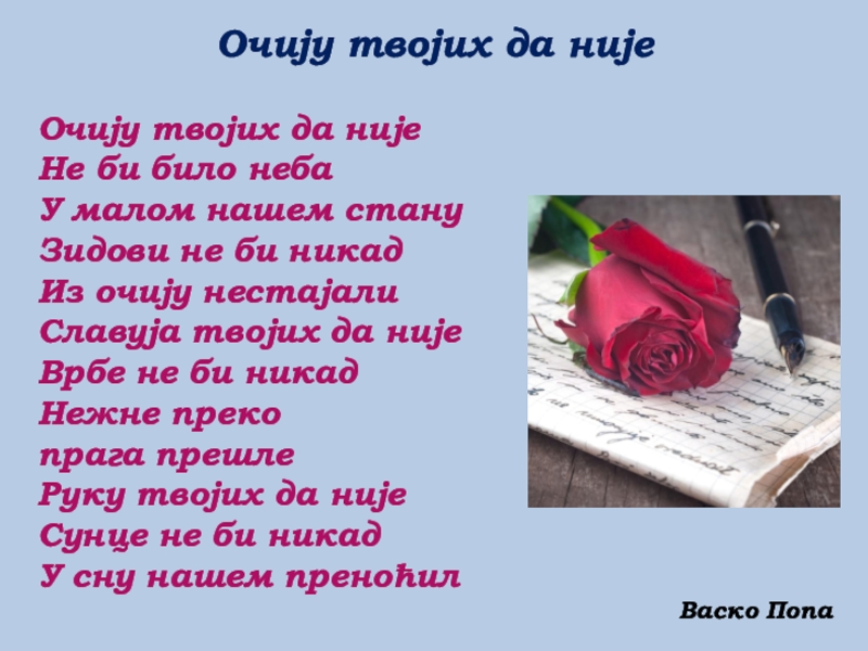 Не би било неба                         У малом нашем стану           Зидови не би никад                 Из очију нестајали