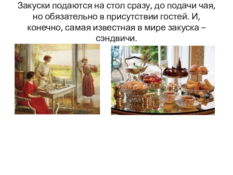 присутствии гостей. И, конечно, самая известная в мире закуска – сэндвичи.