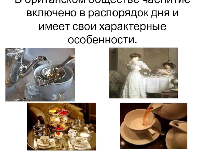 Слайд 9В британском обществе чаепитие включено в распорядок дня и имеет свои