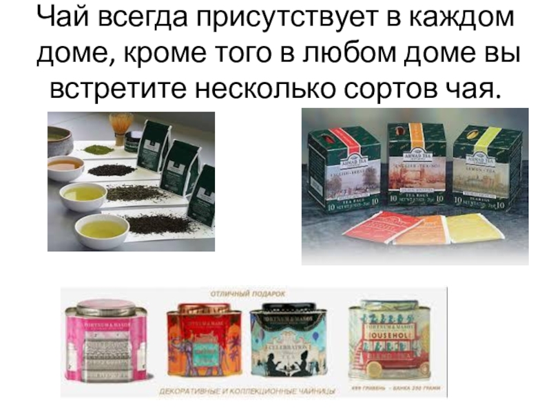 Слайд 10Чай всегда присутствует в каждом доме, кроме того в любом доме
