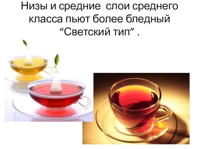 Слайд 12Низы и средние слои среднего класса пьют более бледный “Светский тип”
