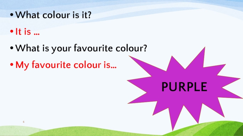 What colour is it?It is …What is your favourite colour?My favourite colour is…PURPLE