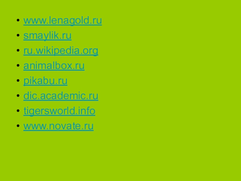 www.lenagold.ru  smaylik.ru ru.wikipedia.org animalbox.ru pikabu.rudic.academic.ru tigersworld.info www.novate.ru