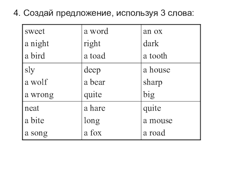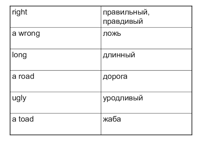 A toad, mean, a wrong, sweet, a road, ugly, an ox, a hare.