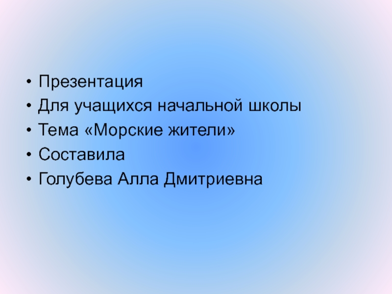 Презентация Для учащихся начальной школыТема «Морские жители»СоставилаГолубева Алла Дмитриевна