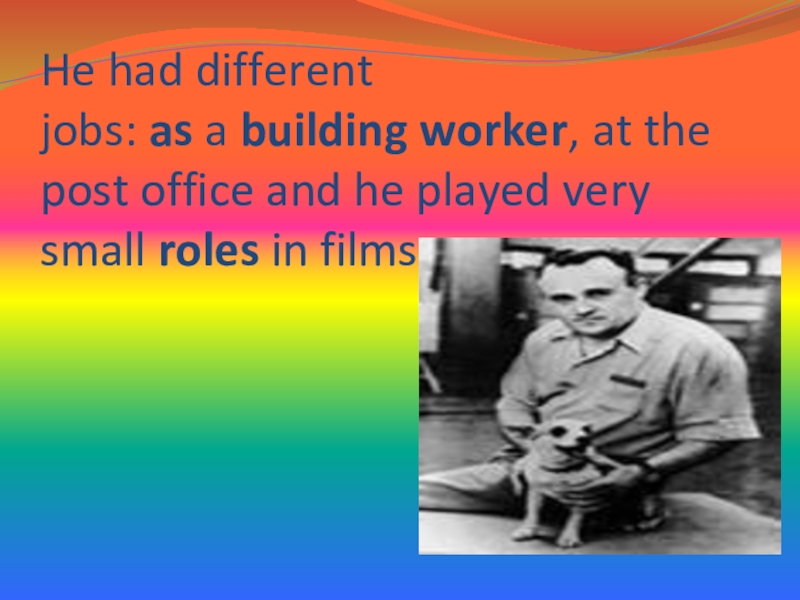 Слайд 8He had different jobs: as a building worker, at the post office and he played