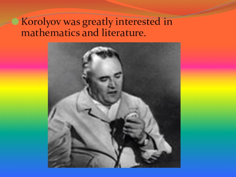 Слайд 3Korolyov was greatly interested in mathematics and literature.