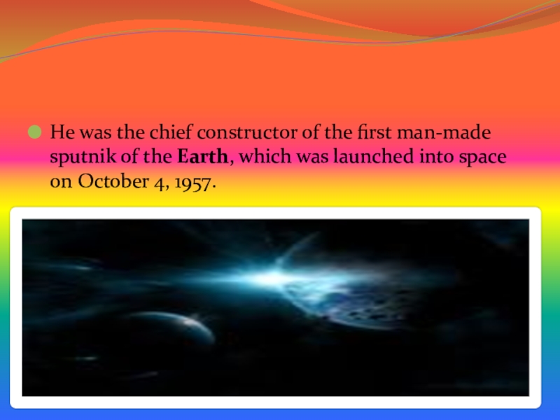 He was the chief constructor of the first man-made sputnik of the Earth, which was launched into space
