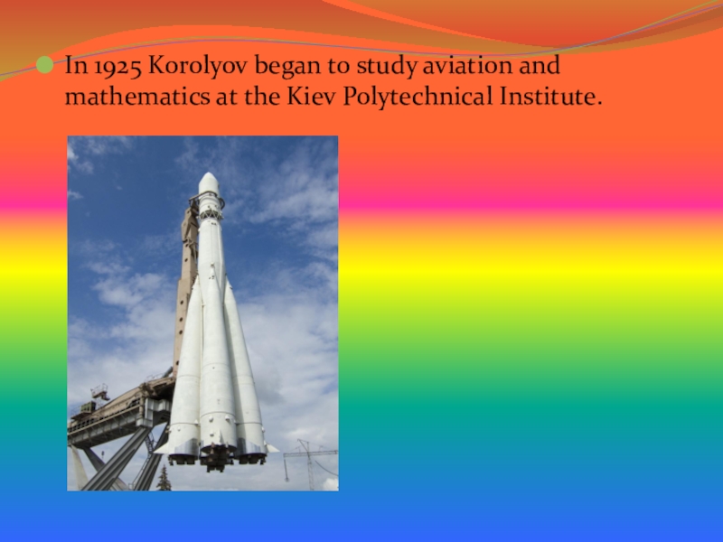 Слайд 5In 1925 Korolyov began to study aviation and mathematics at the