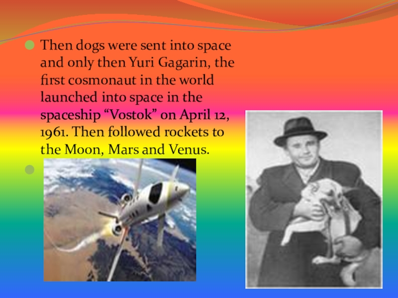 Слайд 12Then dogs were sent into space and only then Yuri Gagarin,