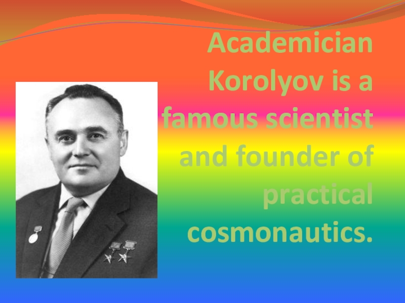 Слайд 1Academician Korolyov is a famous scientist and founder of practical cosmonautics.