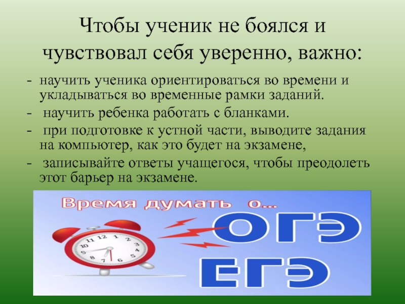 Слайд 13Чтобы ученик не боялся и чувствовал себя уверенно, важно: