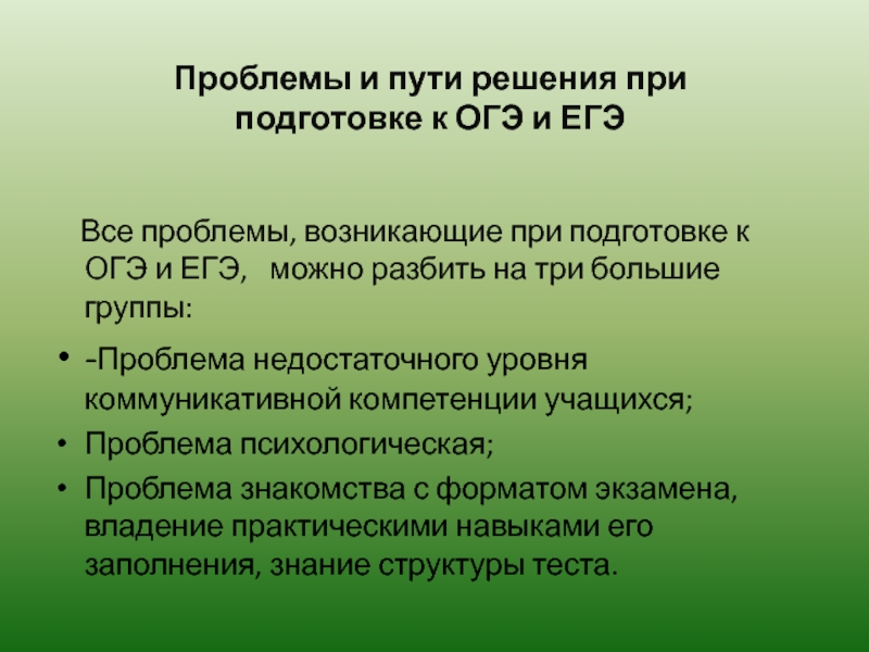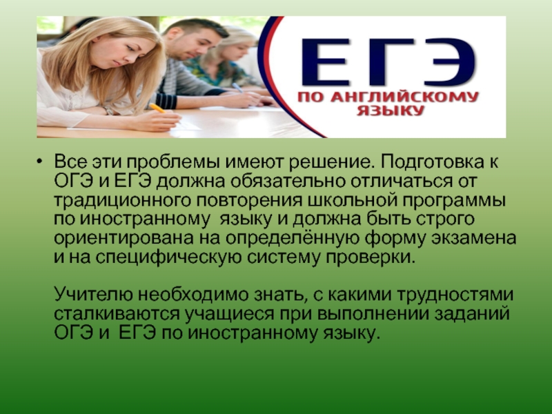 Слайд 7Все эти проблемы имеют решение. Подготовка к ОГЭ и ЕГЭ должна