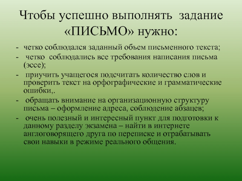 Слайд 11Чтобы успешно выполнять задание «ПИСЬМО» нужно: