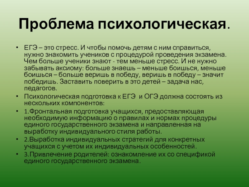 Психологическая подготовка к ЕГЭ и ОГЭ должна состоять из нескольких компонентов:
