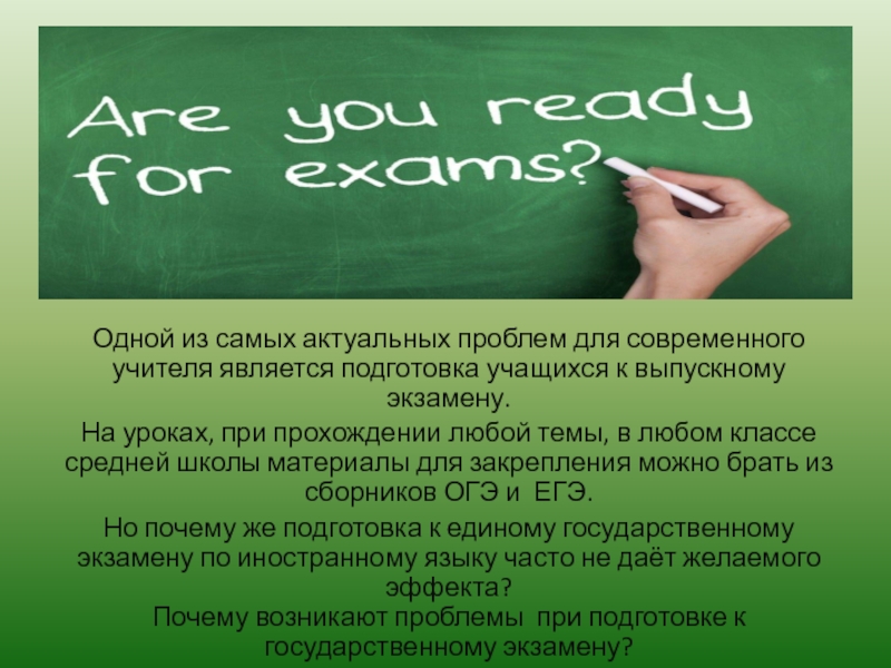 Слайд 2Одной из самых актуальных проблем для современного учителя является подготовка учащихся