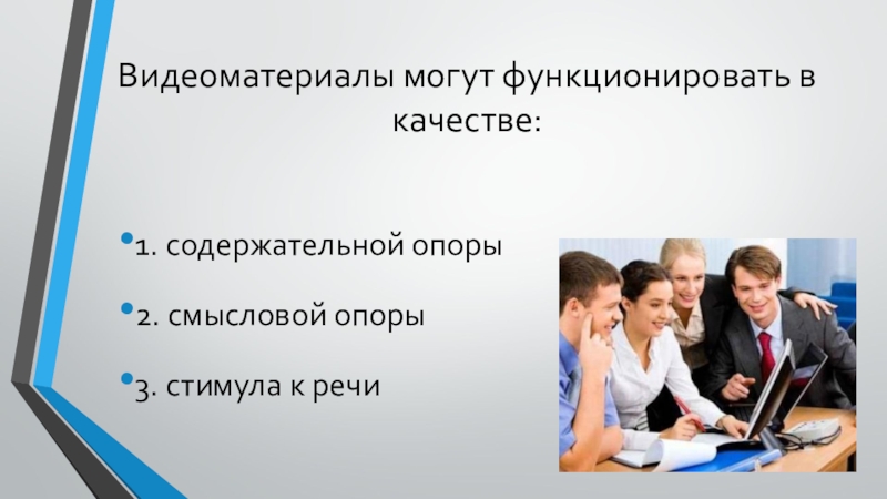 Слайд 10Видеоматериалы могут функционировать в качестве: