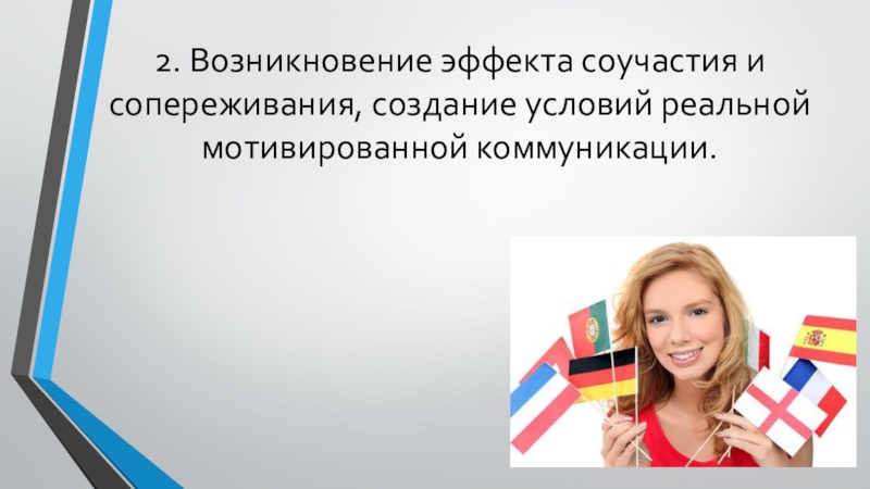 2. Возникновение эффекта соучастия и сопереживания, создание условий реальной мотивированной коммуникации.