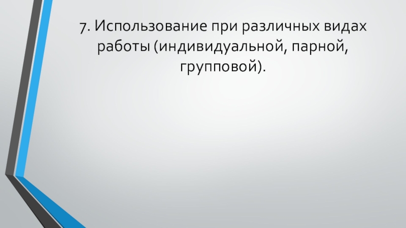 7. Использование при различных видах работы (индивидуальной, парной, групповой).