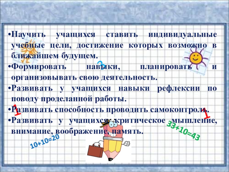 Научить учащихся ставить индивидуальные учебные цели, достижение которых возможно в ближайшем