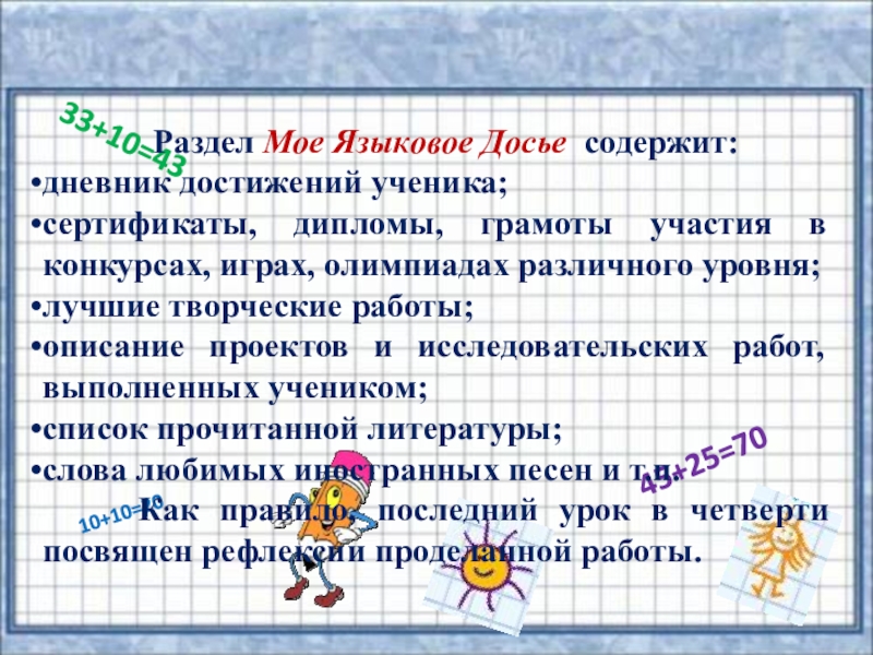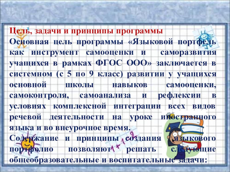Содержание и принципы создания языкового портфолио позволяют решать следующие общеобразовательные и воспитательные задачи: