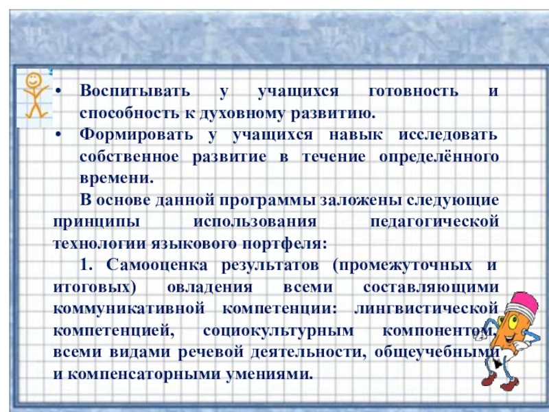 В основе данной программы заложены следующие принципы использования педагогической технологии языкового портфеля: