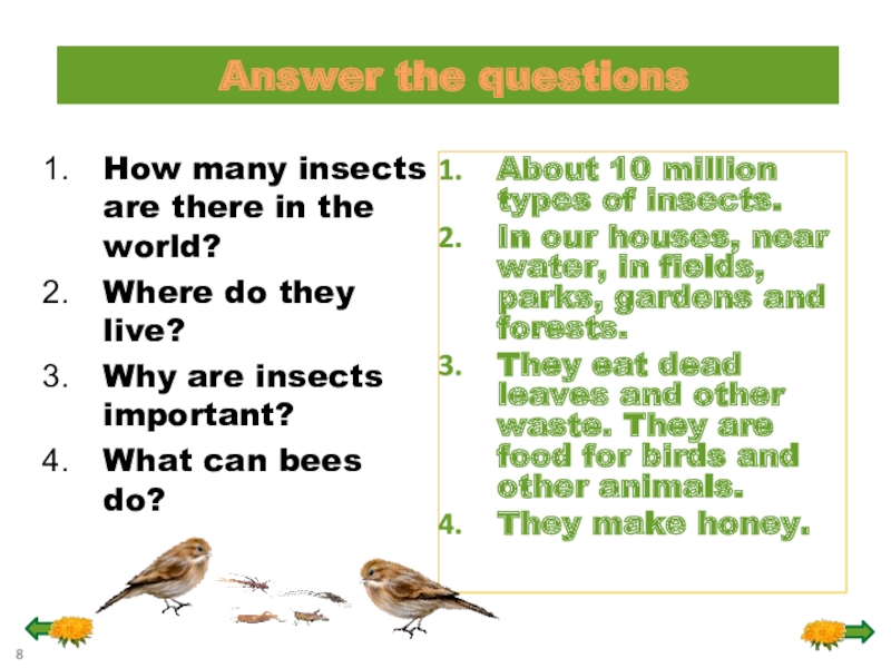 They eat dead leaves and other waste. They are food for birds and other animals.