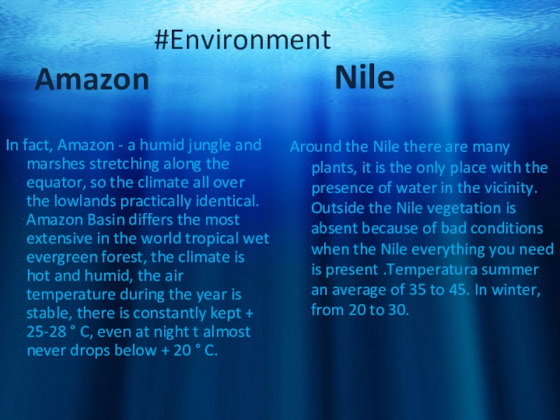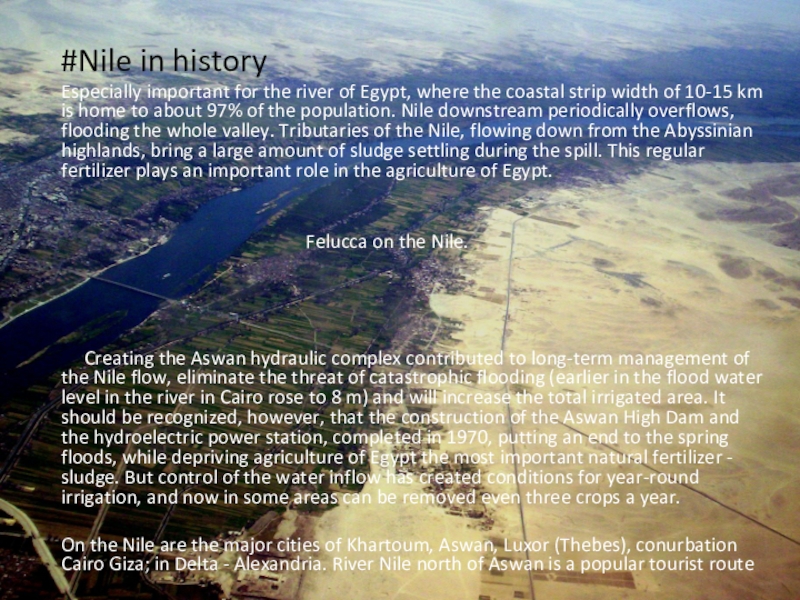 Around the Nile there are many plants, it is the only place with the presence of water in the vicinity. Outside the Nile vegetation is absent because of bad conditions when the Nile everything you need is present .Temperatura summer an average of 35 to 45. In winter, from 20 to 30.