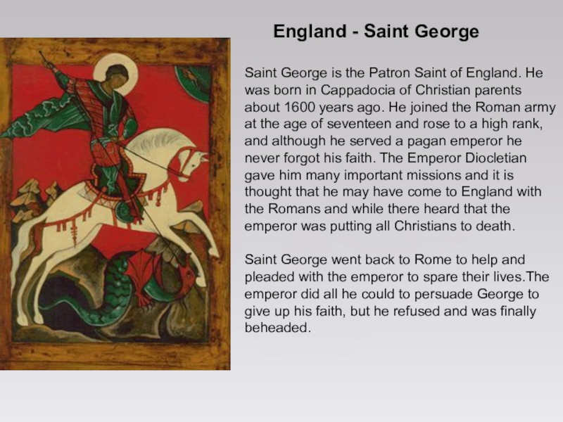 The story of George fighting the dragon is a way of telling of how good can overcome evil.