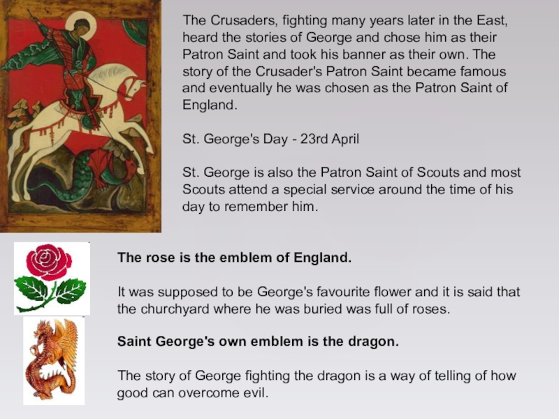 It was supposed to be George's favourite flower and it is said that the churchyard where he was buried was full of roses.