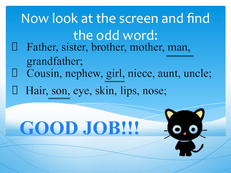 Cousin, nephew, girl, niece, aunt, uncle;