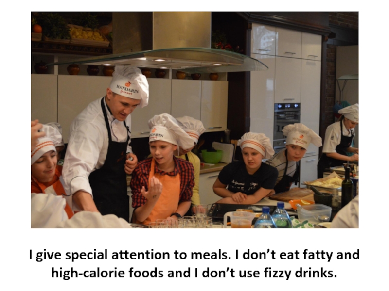 Слайд 9I give special attention to meals. I don’t eat fatty and