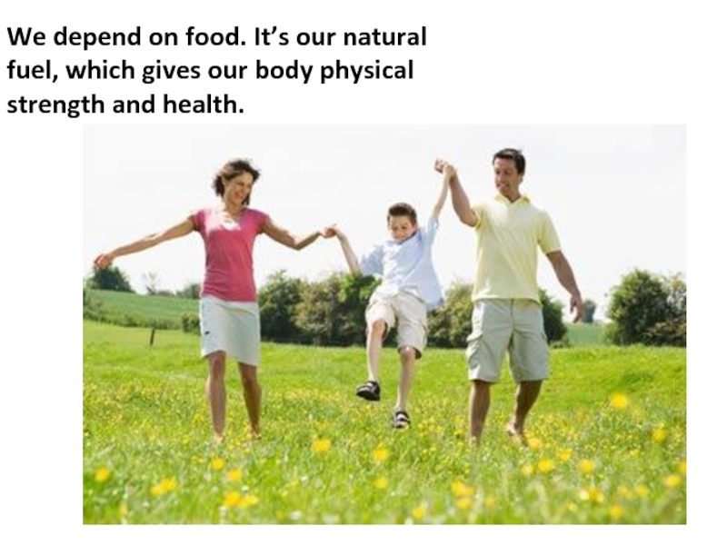 Слайд 2We depend on food. It’s our natural fuel, which gives our