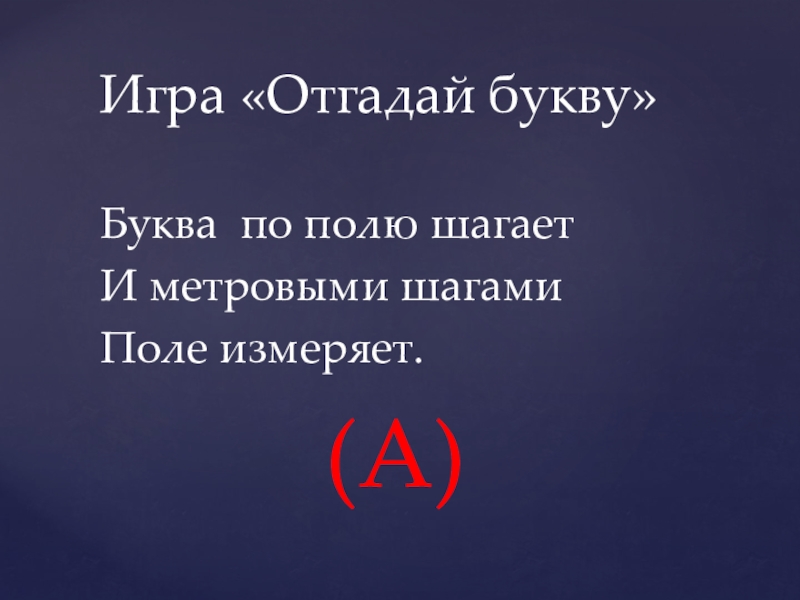Буква по полю шагаетИ метровыми шагамиПоле измеряет. (А)Игра «Отгадай букву»