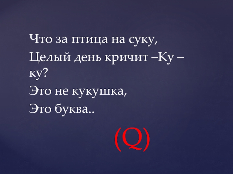Что за птица на суку, Целый день кричит –Ку –ку?Это не кукушка,Это буква..