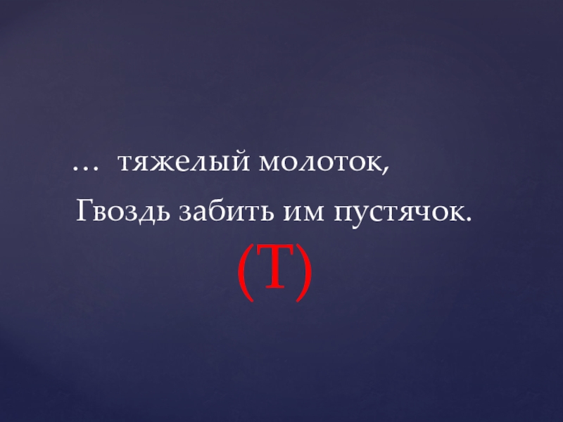 … тяжелый молоток,Гвоздь забить им пустячок. (T)