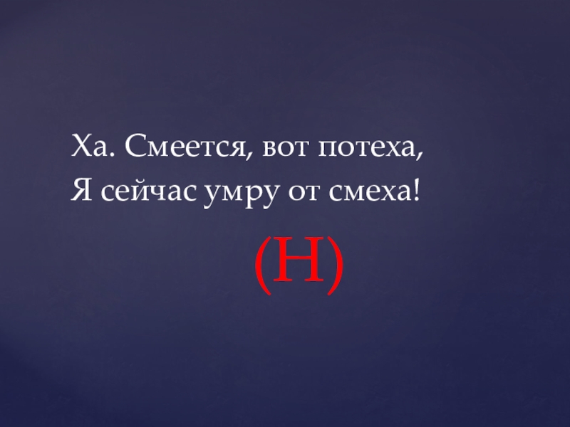Ха. Смеется, вот потеха,Я сейчас умру от смеха! (H)