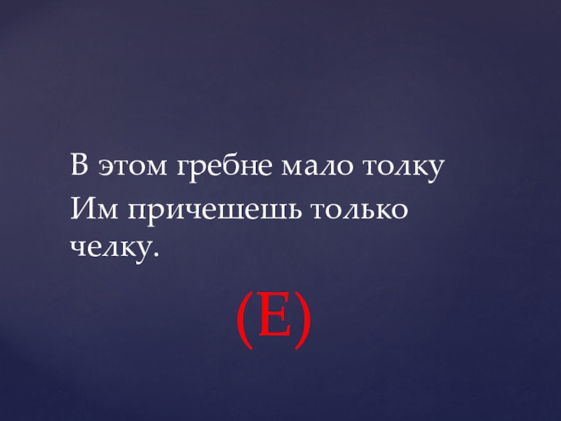 В этом гребне мало толкуИм причешешь только челку. (Е)