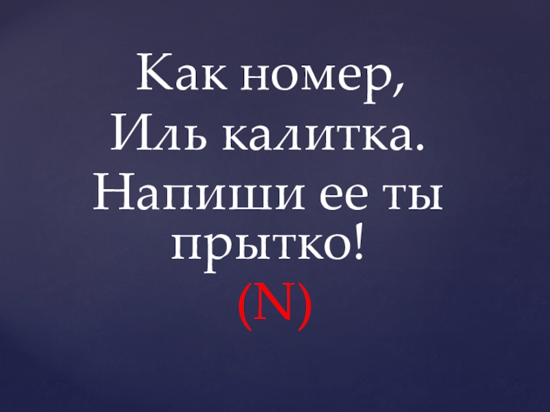 Как номер,Иль калитка.Напиши ее ты прытко! (N)