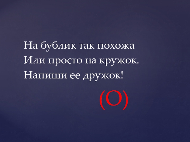 На бублик так похожаИли просто на кружок.Напиши ее дружок!