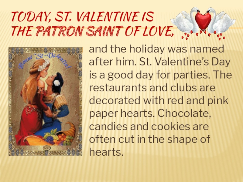 Слайд 4Today, St. Valentine is the Patron Saint of love,
