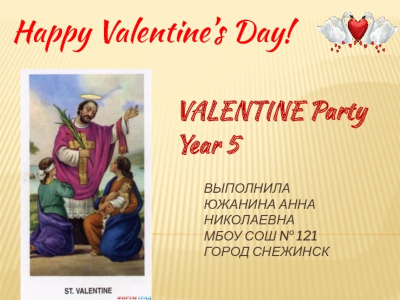 выполнила Южанина Анна Николаевна МБОУ СОШ № 121 город Снежинск VALENTINE PartyYear 5Happy Valentine’s Day!