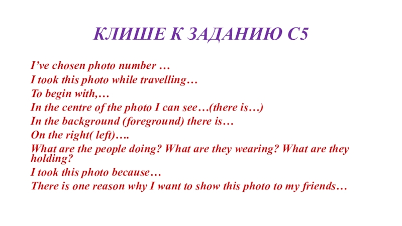 Слайд 19КЛИШЕ К ЗАДАНИЮ С5