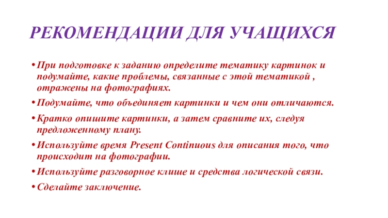 Слайд 10РЕКОМЕНДАЦИИ ДЛЯ УЧАЩИХСЯ