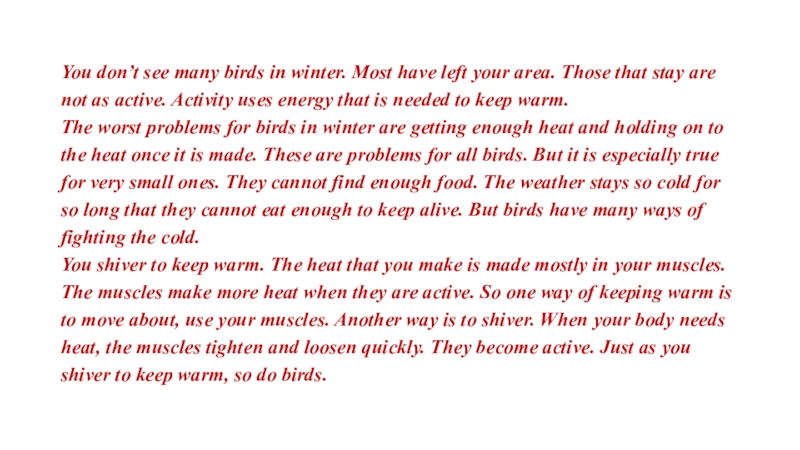 so long that they cannot eat enough to keep alive. But birds have many ways of